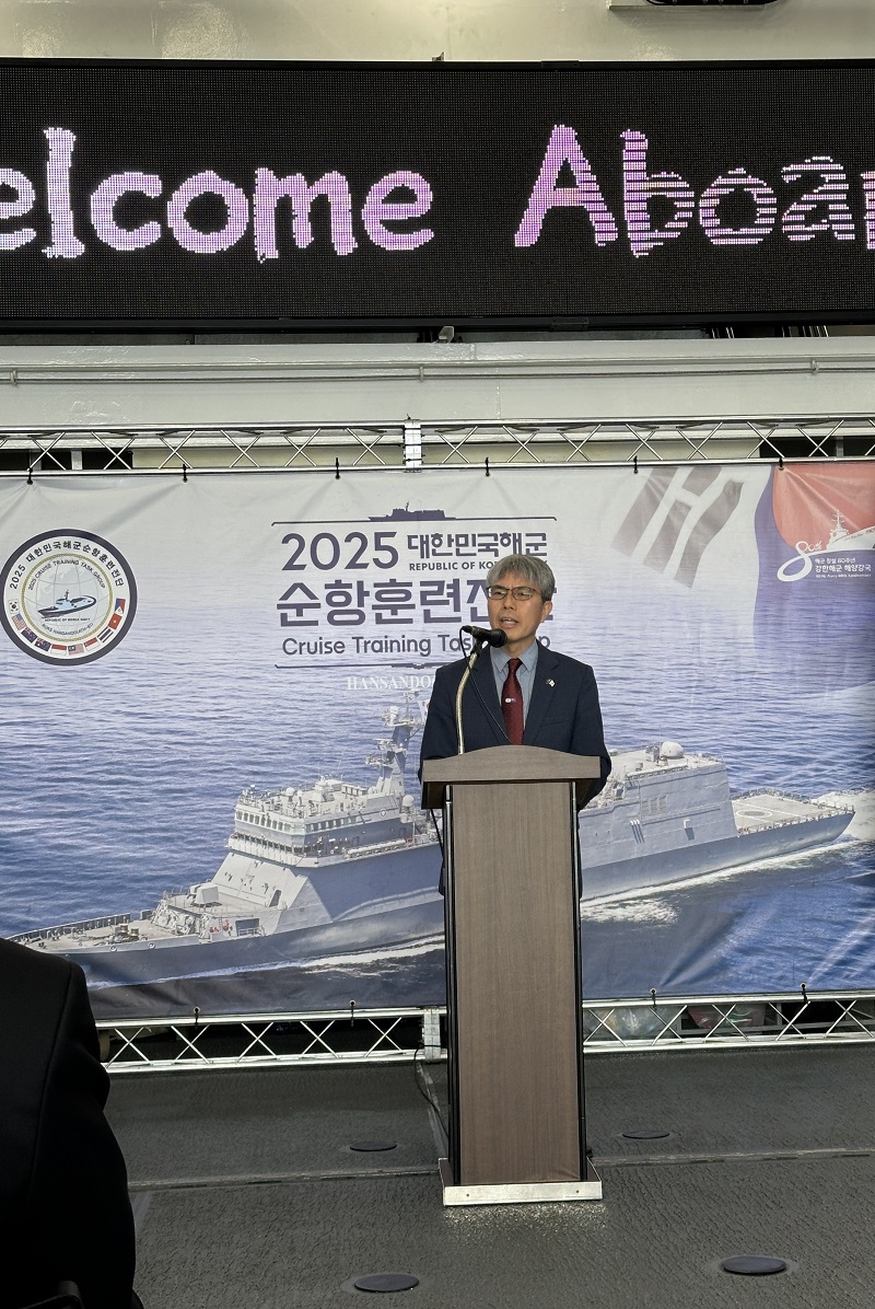 김홍기 총영사는 10.13.(월), 뉴질랜드 오클랜드에 입항한 대한민국 해군 2025순항훈련전단 입항환영식에 참석하여 금번 방문이 뉴질랜드와 군사협력 분야를 넘어 한국과 뉴질랜드 간 외교·방산 등 포괄적 협력관계를 더욱 강화하는 뜻깊은 계기가 되기를 기대한다고 말하였습니다.